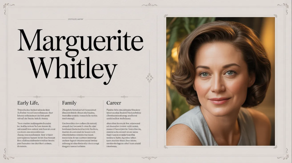 Marguerite Whitley has kept most information about her family background private. There are no widely available records about her parents or siblings. This makes it difficult to provide detailed insights into her early family life.