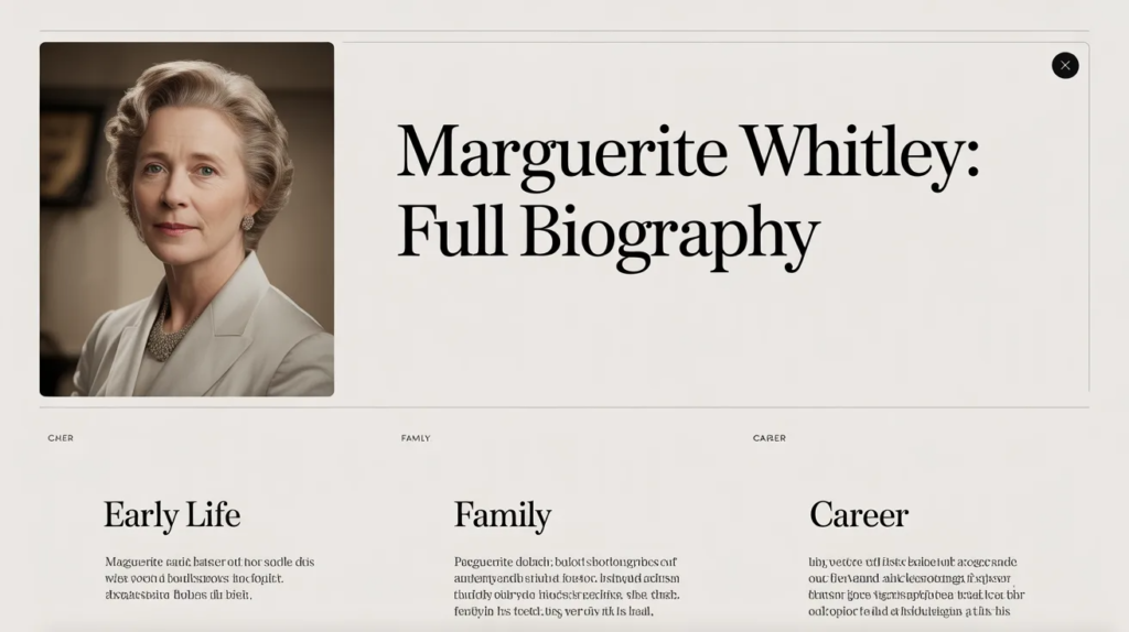Unlike many individuals connected to celebrities, Marguerite Whitley has maintained a private lifestyle. This has resulted in limited public information about her, which increases curiosity around her background, family, and personal journey. Her story reflects the experience of someone who was once closely linked to fame but chose a quieter path later in life.